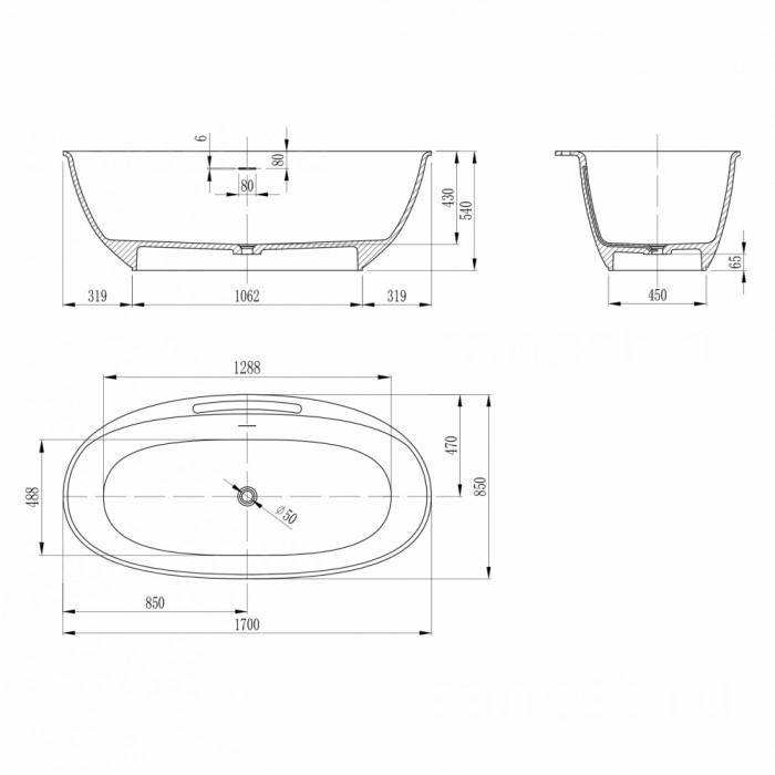 Технические характеристики Ванна из искусственного камня ABBER Stein AS9631 белая матовая