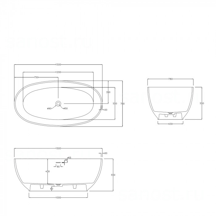 | Цветбелый матовый | Монтажотдельностоящая | Формаовальная |