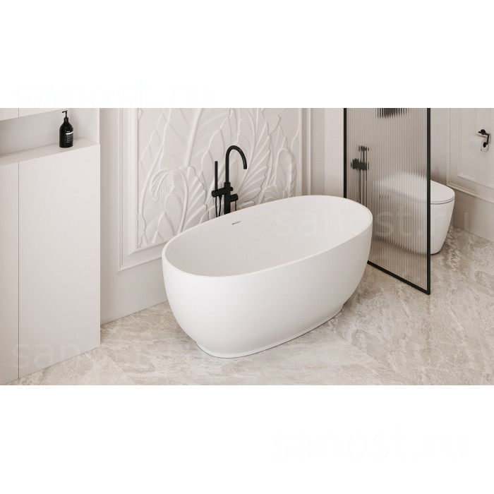 Ванна из искусственного камня ABBER Stein AS9641-1.5 белая матовая универсальная отдельностоящая, материал искусственный камень, объём 195 литров. Германия. Гарантия 10 лет.