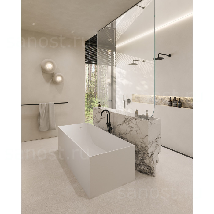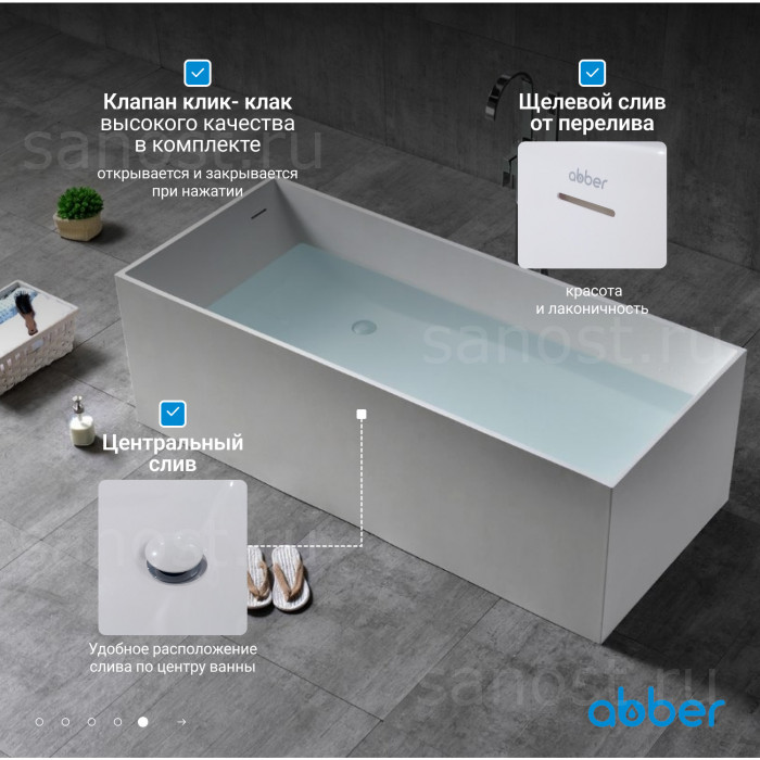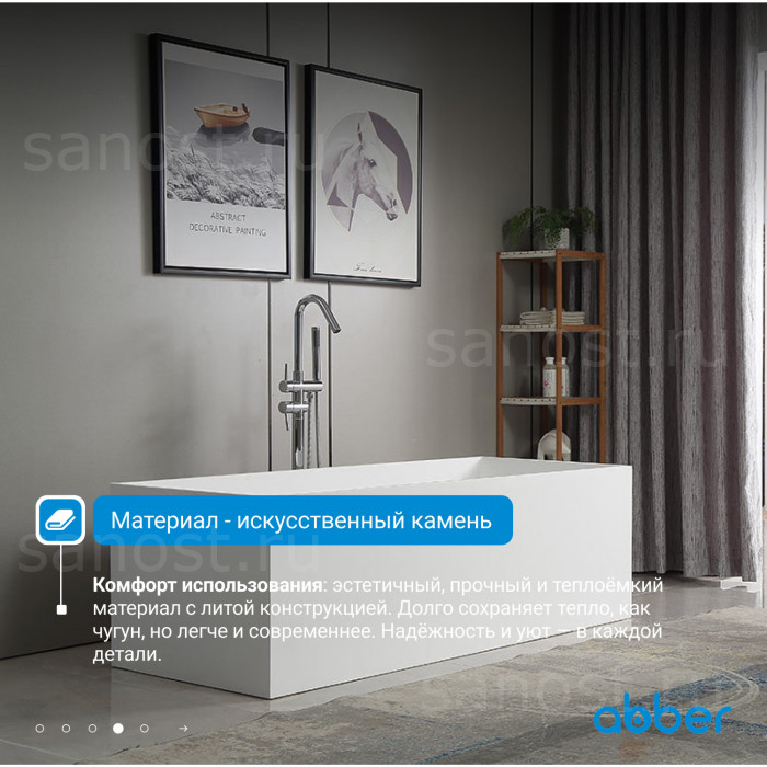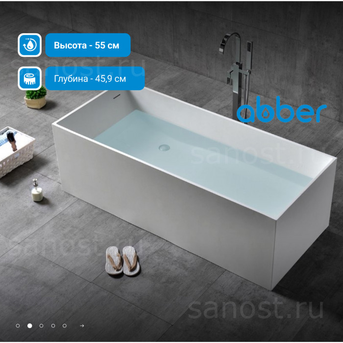 Ванна из искусственного камня ABBER Stein AS9642-1.8 белая матовая универсальная отдельностоящая, материал искусственный камень, объём 280 литров. Германия. Гарантия 10 лет.