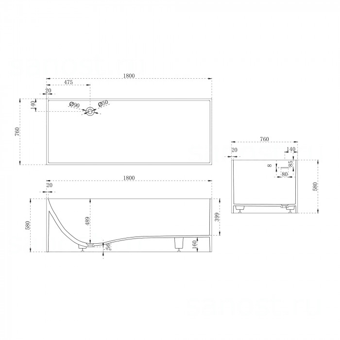 | Цветбелый матовый | Монтажотдельностоящая | Формапрямоугольная |