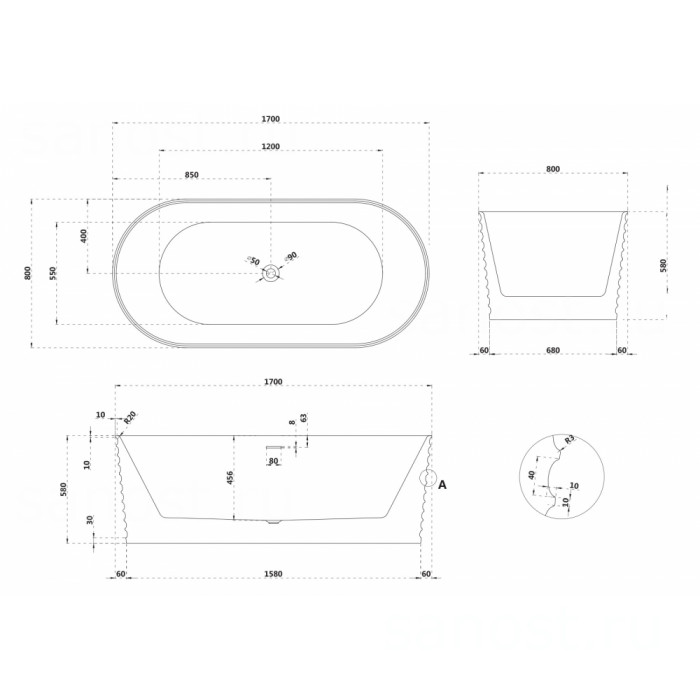 | Цветбелый матовый | Монтажотдельностоящая | Формаовальная |