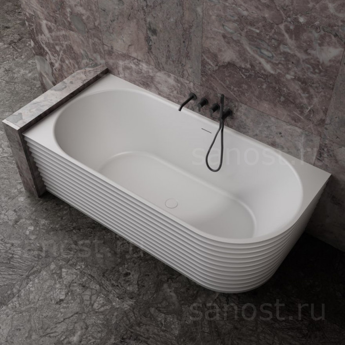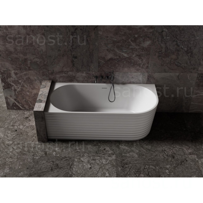 Ванна из искусственного камня ABBER Stein AS9651 L белая матовая левосторонняя пристенная, материал искусственный камень, объём 230 литров. Германия. Гарантия 10 лет.