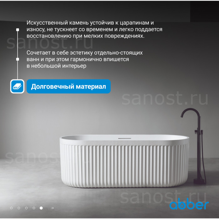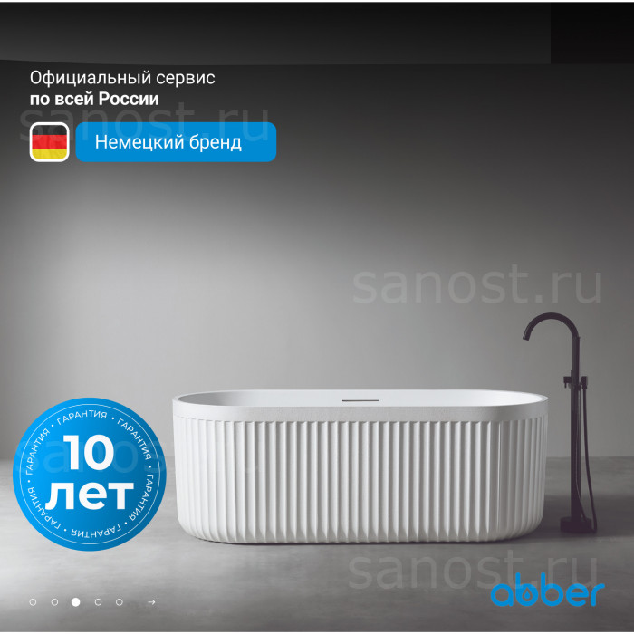 Ванна из искусственного камня ABBER Stuttgart AM9925 белая матовая универсальная отдельностоящая, материал композитный камень Rock, объём 325 литров. Германия. Гарантия 10 лет.