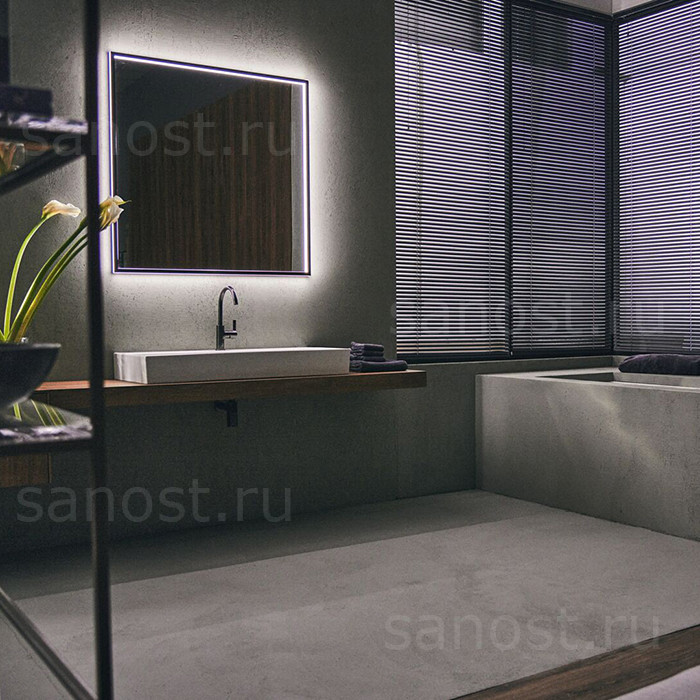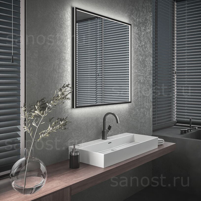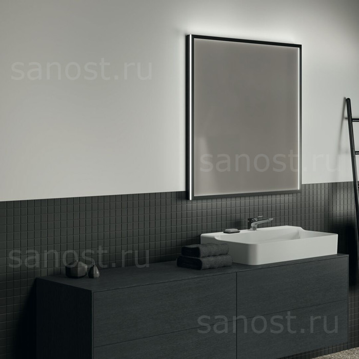 Описание товара: Ideal Standard Conca Квадратное зеркало в черной раме 100х100 см с диаметрической светодиодной подсветкой