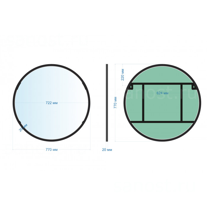 Технические характеристики Зеркало ABBER Mond AG6201B без подсветки, металлическая рама, черный