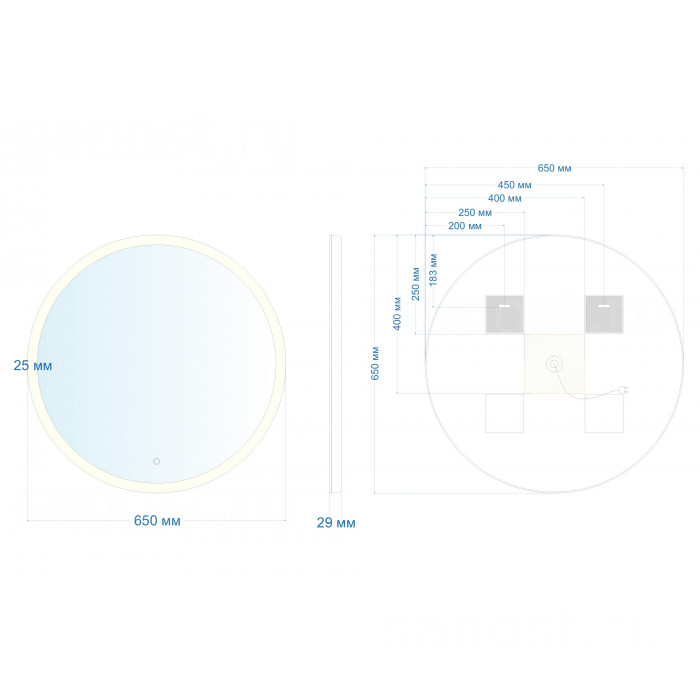 Зеркало ABBER Mond AG6202S-0.65 с подсветкой, сенсорный выключатель, диммер, крепеж в комплекте. Россия. Гарантия 2 года.
