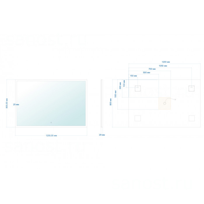 Технические характеристики Зеркало ABBER See AG6107SXL-1.2 с подсветкой, сенсорный выключатель, диммер