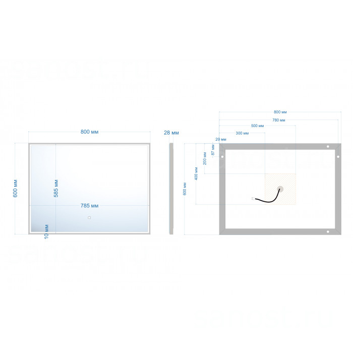Технические характеристики Зеркало ABBER See AG6108SL-0.8 с подсветкой, сенсорный выключатель, диммер
