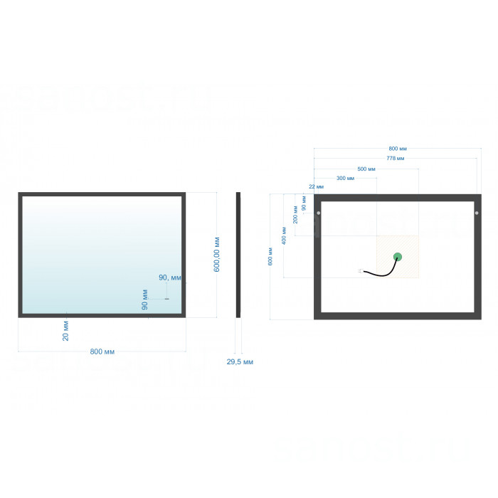 Технические характеристики Зеркало ABBER See AG6110SCL-0.8 с подсветкой, бесконтактный выключатель, диммер, черный