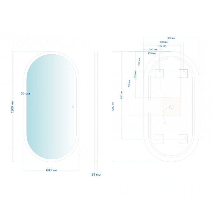 Технические характеристики Зеркало ABBER See AG6113SMult с подсветкой, сенсорный выключатель, диммер