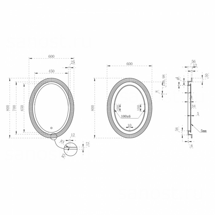 Технические характеристики Зеркало для ванной ABBER Stein AS6601Violett с подсветкой